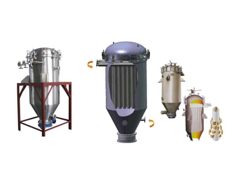 Candle filter (also called microporous filter) in a closed container , combine by many pieces microporous filter cartridges , (or cover clothes outside the filter cartridges and filter medium ), when filtering we should send the slurry intothe filter with the pump , the liquid of the slurry through the filter medium into the center of the multihole filter cartridges , then collect them to discharge form the outlet port of the clear liquid , befor the formation of the candle filte , the discharge“clear liquid"return to the raw material slurry inlet port then resend to filter as cycle filtering , until the candle filter formed (can meet the filter requirements), provides a signal and the control solution no longer cycle , clear liquid through the three - port valve to the use of next working procedure ,then for normal filtering.
